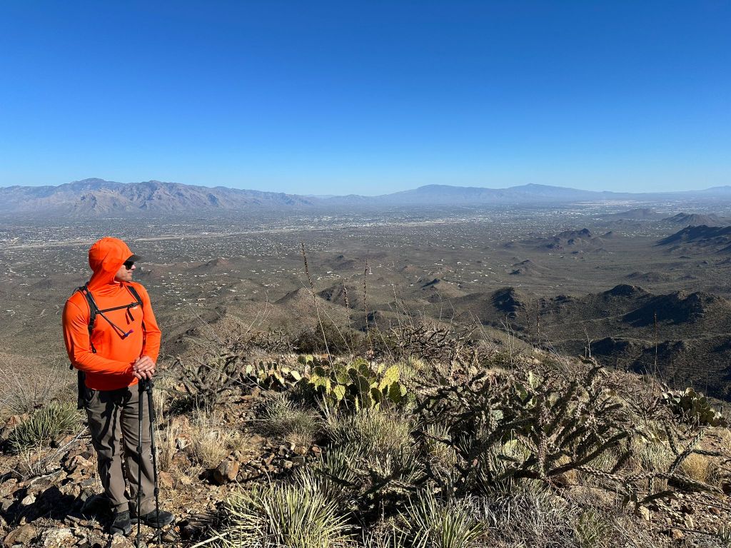 Down the Backside. Picacho SP.December Sunshine. Wasson Peak overlooking Tucson sprawl.