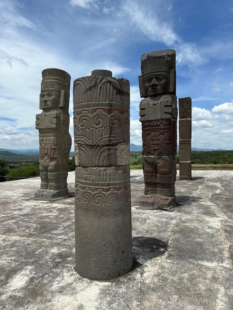 Massive carved warriors overlook the Tula River valley from atop a pyramid in what was once the center of Toltec civlization.