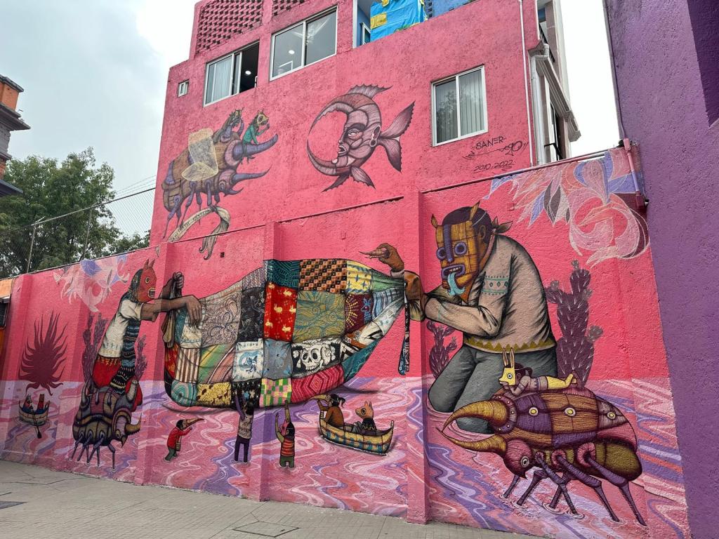 Meeting up with Isaac and stumbling upon a Saner mural. Un gran día en la tierra de los coyotes!