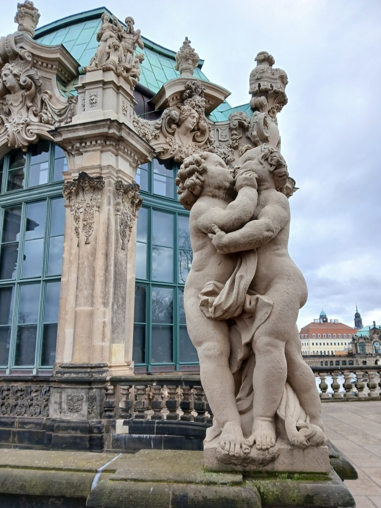 Christmas Markets = Street food, Glüwein galore, happy crowds, and communal holiday cheer in abundance. Watchful apes and creepy cupids.Kiss me you big baby!FrauenkircheNighttime on the Elbe.