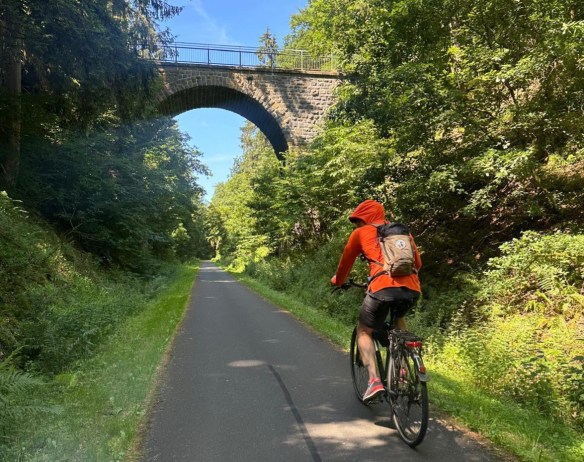After spending the solstice in Koblenz, we hopped on a train with the bikes, shuttled most of the way back, and then rode a different route home from the train station. The last couple of weekends have been similar with bus-supported bike rides to various named routes in the local region. Miles and miles and miles of cruising through vineyards, along waterways, through tunnels, across bridges, past churches and castles, and into the hearts of centuries old downtowns.