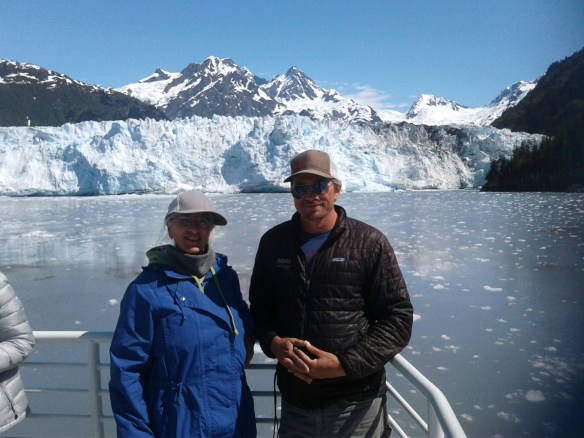 It was her first time up to Alaska and we made the most of every day. As is often the case with having visitors, it was great to go and do some things that I may never have done on my own, as well as to share a few of the places I get to hang out in on a regular basis. We did lots of short hikes, paddled a canoe around Bear Lake and down the Delta-Clearwater, went out 4-wheeling, spent an evening at Birch Lake and a beautiful night cruising around on a pontoon boat, and then went down to Valdez for a while. There it was enjoying the seaside mountain scenery, and going out in Prince William Sound on a Stan Stephens tour for a full day of wildlife, waterfalls, and glaciers. Got really lucky with everything on that day of nothing but sunshine, and were treated to glimpses of just about every animal on the provided checklist: otters, seals, sea lions, puffins, gulls, eagles, porpoise, humpback whale, black bear, etc. Back this way for the last couple of days we hit a lot of the popular tourist stops, including Rika’s Roadhouse, Quartz Lake, the Santa House, UAF Museum of the North, Creamer’s Field, LARS, Ester Dome and more. I know she was happy for the opportunity to come up and hang out, but has probably also been happy to get some rest since she’s been home. A great week and plenty of requisite Us Doing Things and Standing in Front of Things photos to prove it 🙂