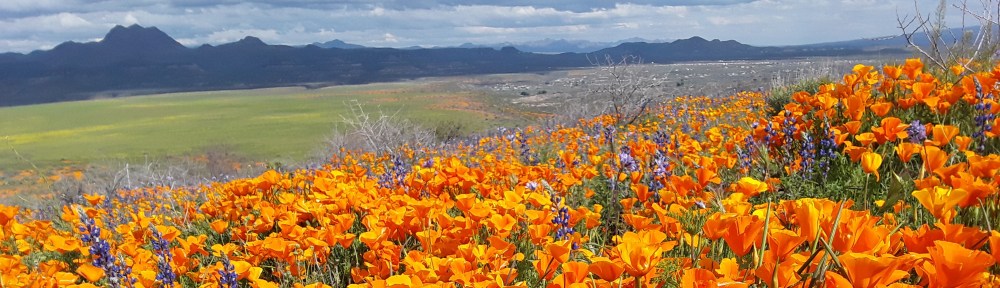 Short days since noting the lifeless nature of winter twilight—vibrant resurgence. Budding energy permeates the fabled lion winds of March. Emanates from fertile earth after months of benevolent rain. Short days after posting those last photos I found myself east of town in the Peloncillo Mountains, inert up top while blanketed in lively yellow flowers down below. Found myself the next day in the Gila Box, emergent blossoms in all directions. Found myself yesterday to the west, meandering atop Peridot Mesa amidst literally millions of freshly bloomed wildflowers. Found myself in awe, once again.