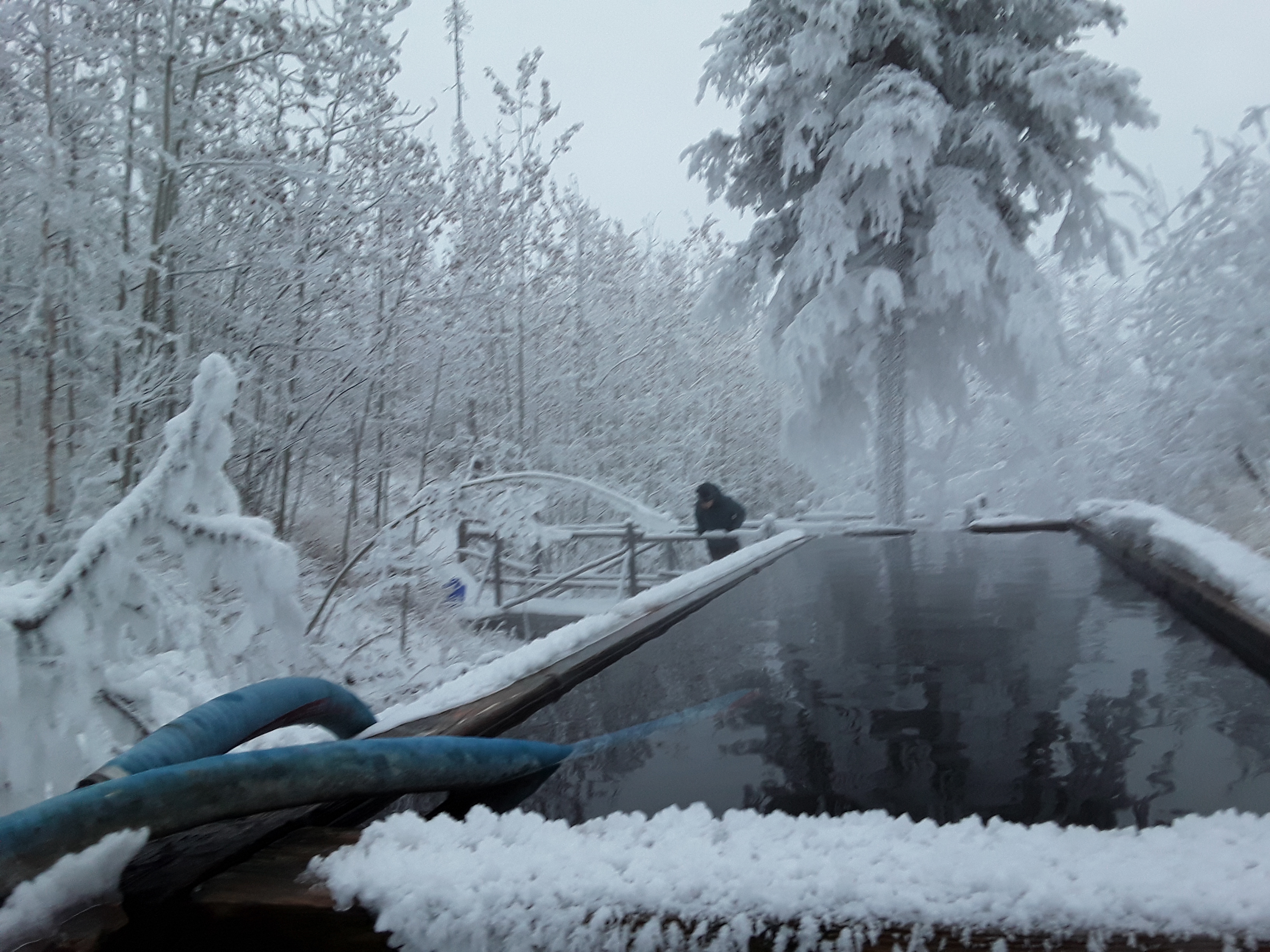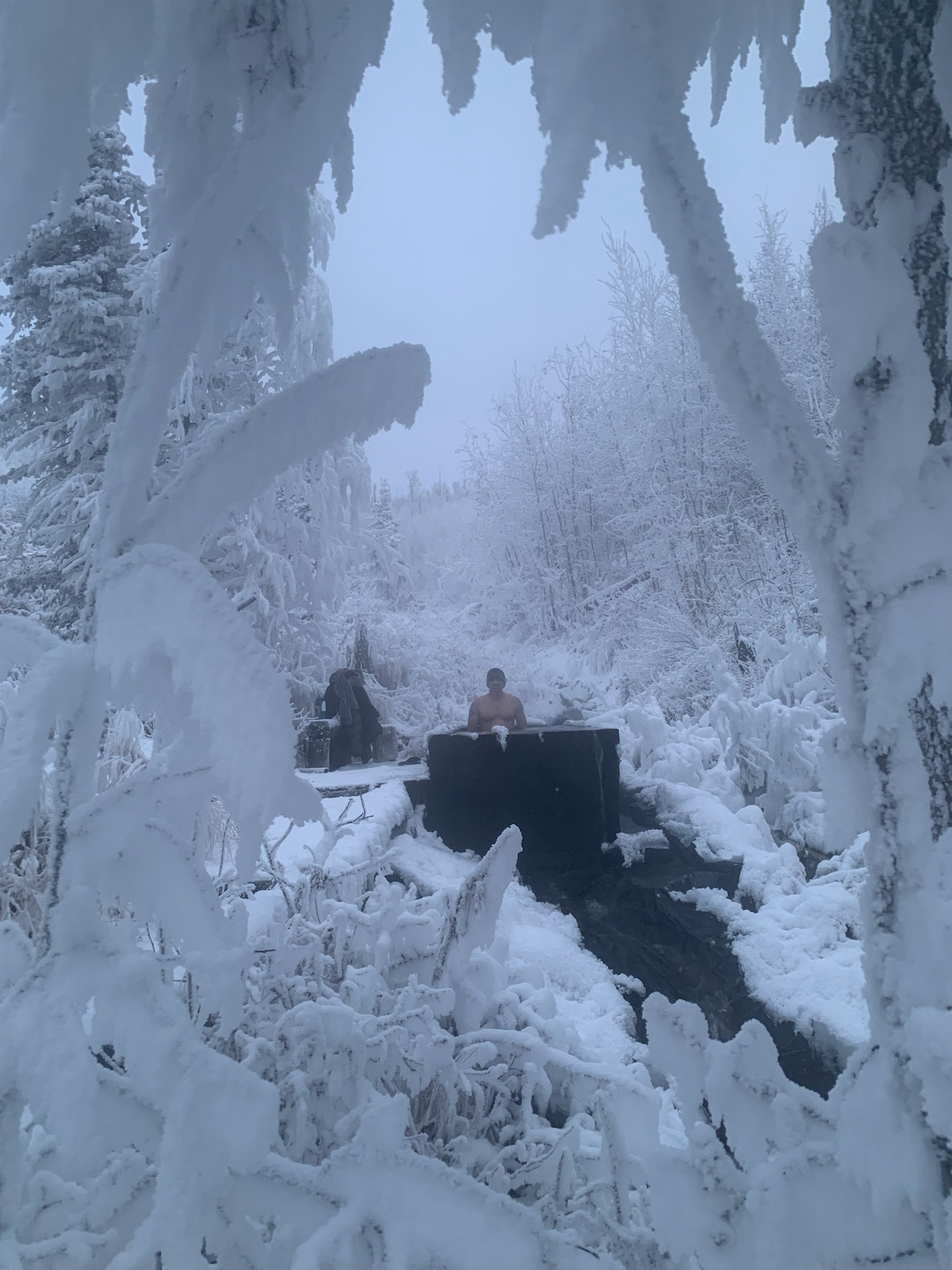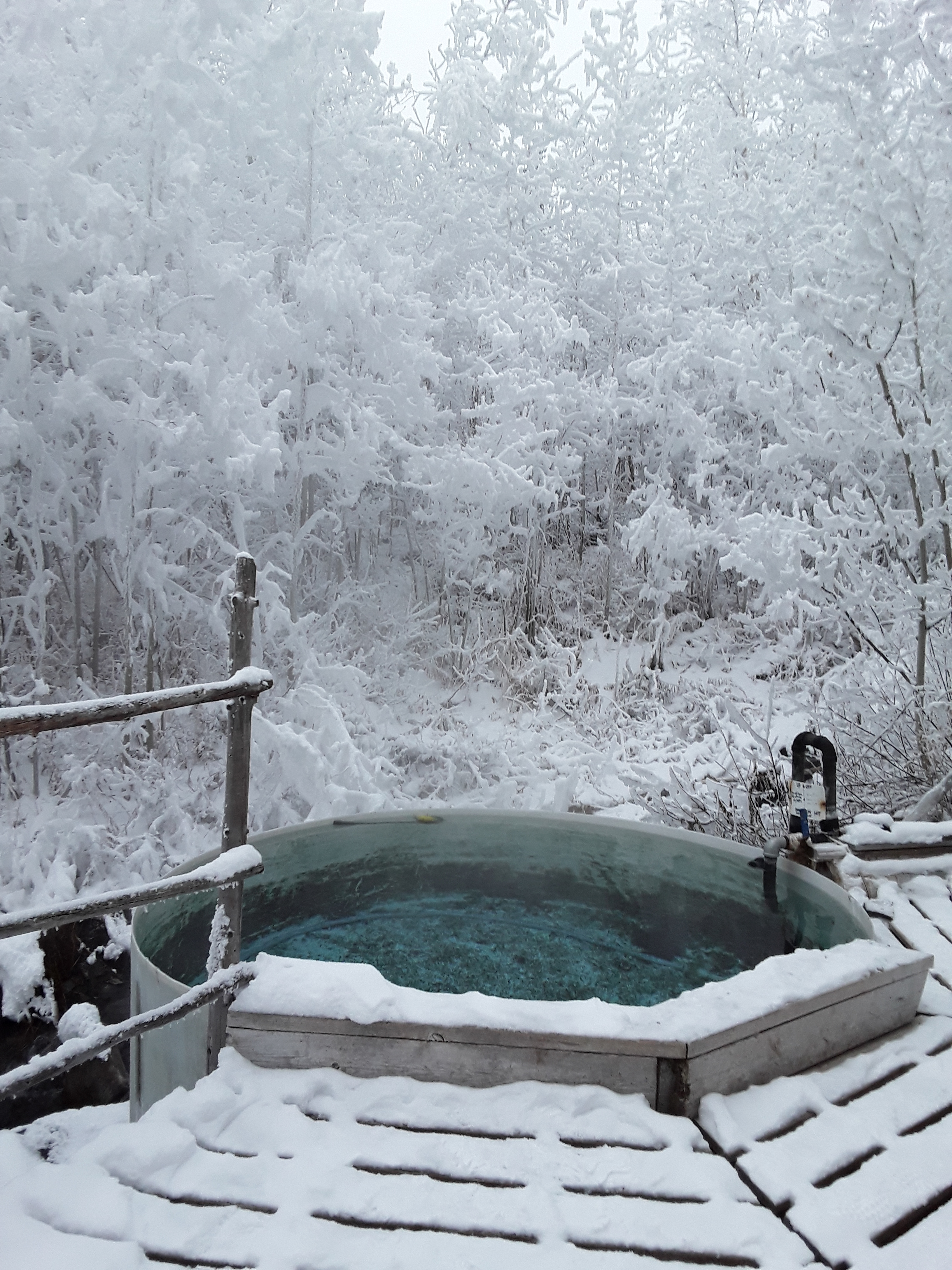 I had been hoping to visit Tolovana for a lot of years. Not sure when I first heard about the place, but by the time I arrived in Fairbanks a couple years back, getting to the hot springs was already etched in my mind. I almost committed two years ago, but this is one trip that didn’t seem like a good solo mission in the middle of February, or any other time for that matter. The trailhead is a couple desolate hours from Fairbanks on what is for all purposes a trucker’s ice road in the winter time. While the Elliot is one of Alaska’s main highways, it’s difficult to keep it clear of drifts, and impossible to do anything about the ice. The trailhead itself is alongside a remote ridgeline that is notorious for high winds and extreme temperatures. Perhaps the most fearsome part of the trip is knowing that you have to leave a car there for a day or two, and that if it doesn’t start when you get back you may be in serious trouble. It’s imperative to prepare for the worst contingencies imaginable, and to bring along all the winter gear you may need to shelter in place, along with a jumper kit and portable stove to warm the engine.