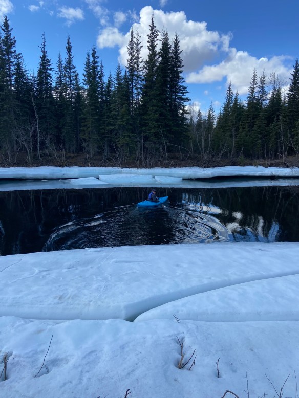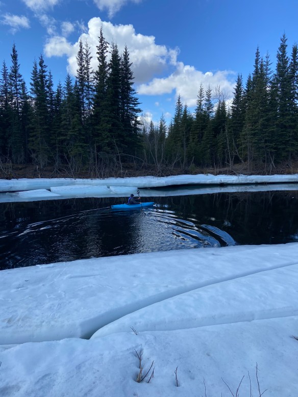 Breakup. Days of sunshine, warming trends, rainfall, and rapidly melting snow. Creeks and rivers transforming from frozen to flowing. Huge blocks of ice splitting apart, fragmented sections of floes meandering downstream only to crash into the next gridlocked section of river where they rise up, spin, and submerge. I have long wanted to witness the phenomenon, and it is quite the sight. Now is the time of shifting seasons, and accompanying thoughts. Dreams of rivers, of drifting current, of past and future adventures, of days spent running rapids and nights sleeping on sandy beaches, the arterial OM of the universe etched in the background.