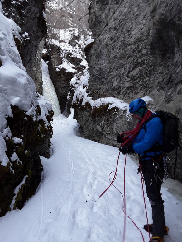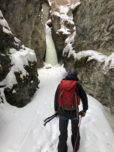 As a funny aside, as we were gearing up to climb a woman showed up at the base of the first falls with camera in hand. She was a professional photographer who had seen our car in the parking lot and followed our tracks up to where she knew we’d be climbing. As mentioned, Pat is usually a pretty no-nonsense character, so I was surprised at his generous attitude at being photographed while climbing, though he did (actually) refuse to smile. Look for us in an upcoming adventure magazine. I’ll be the one exhibiting the shitty technique.