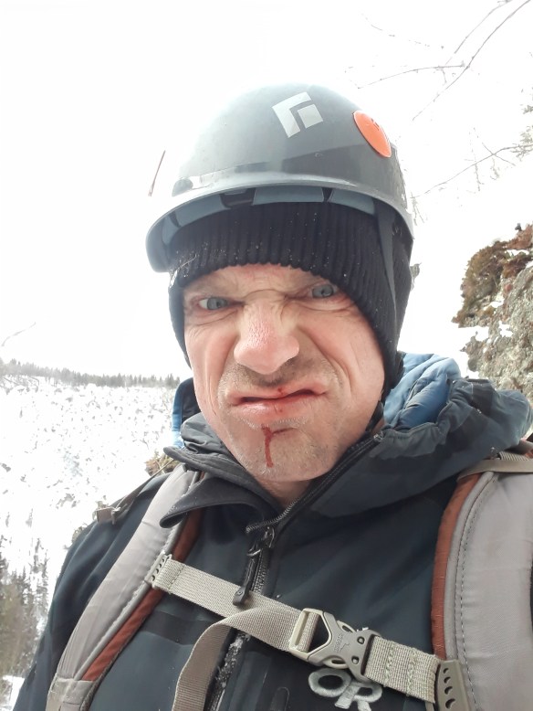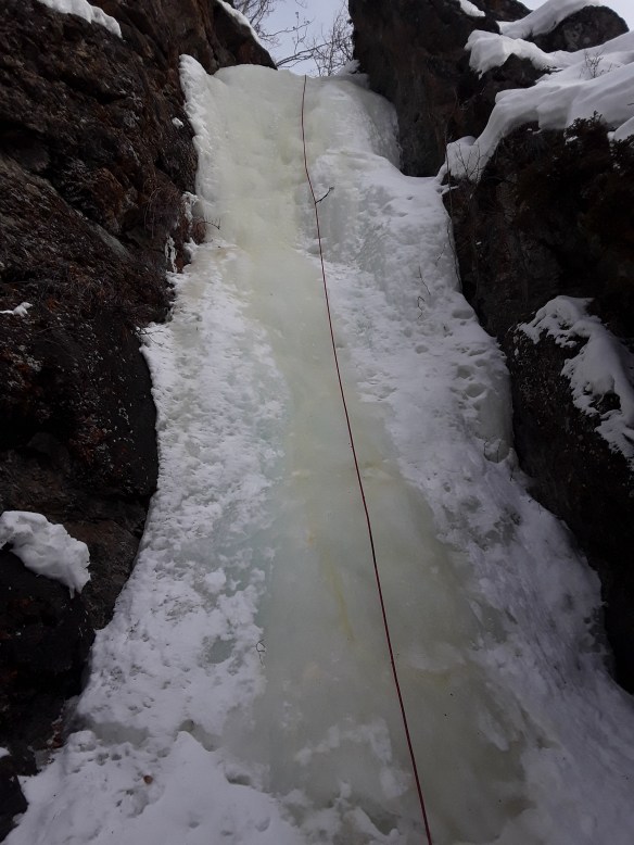 Pat is a pretty serious guy, but he’s always excited to take people out climbing. He’s also a great instructor, and after each section I would ask him a couple of questions to which he would offer tips to improve what he identified as my ‘shitty technique.’ You can’t teach someone everything all at once, however, so I had to learn a couple of lessons the hard way—such as each time you swing the axe you should look where it’s going to hit, then tuck chin to chest upon impact to avoid getting smacked in the teeth with an exploding chunk of ice. Good times. Really. It was an amazing day, and a great experience, and I am super thankful to Pat for taking me out there. So beautiful, and much more fun than I’d imagined ice climbing might be.