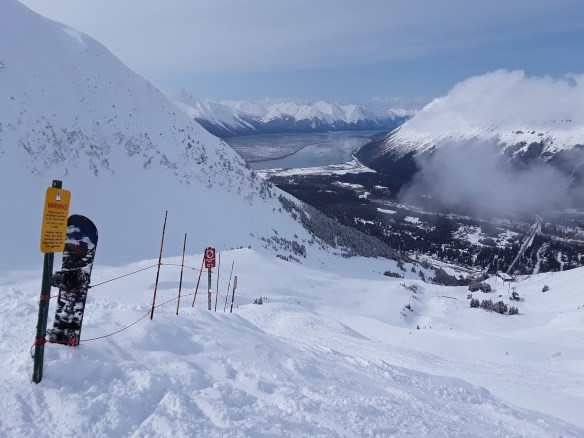 Alyeska. Alyeska is the state’s biggest ski resort, located an hour south of Anchorage. The drive down takes you alongside the Turnagain Arm, where you can see belugas in the summer and lots of sea ice in the winter. Though not as massive as many famous ski areas, Alyeska is a world class resort with several high speed lifts, a tram, great terrain, and one of the best views ever from the entire mountain. Like you’re riding down into the Pacific. The last time I visited was a very long time ago on a pair of Army issued skis, bowlegging it down the mountain in camo Gore-Tex just wishing I had a snowboard. Well, that wish finally came true, and was one of the main intentions of the trip. And man-oh-man, what a day it was. Mid-week, no crowds. Early clouds and overcast turned bluebird before noon, ski patrol started opening up the gates, and it was sunshine, steep lines, and mashed potatoes. Run after run after run. Seven hours of straight shredding son. An all-time top-ten day of riding.