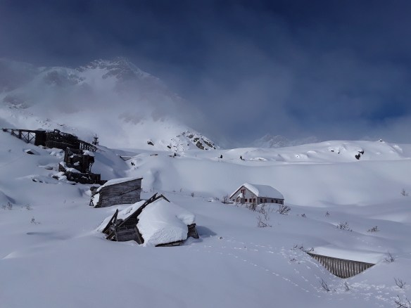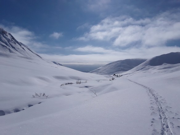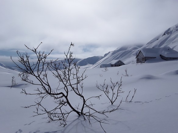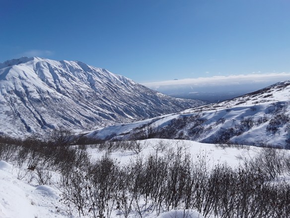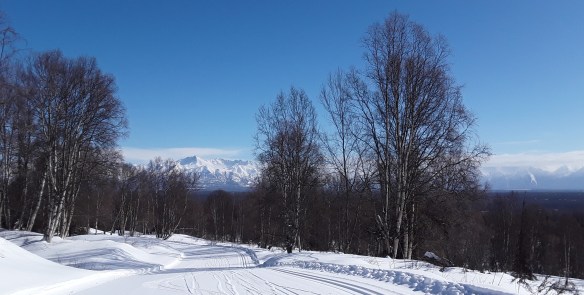 Admittedly, I was somewhat wary to visit Hatcher Pass. It’s beautiful and busy in the summer, and famous for snowmachining and backcountry skiing in the winter. I had always imagined it to be crazy and noisy with people and tracks and avalanche slide paths all over the place. Maybe it gets like that, but the day I went my car was alone in the parking lot, and there was only one set of ski tracks through a foot of powder on the mile up to the mine. Oh, and it was t-shirt weather. Truthfully. Spent a couple of hours soaking in the sunshine and poking around the old gold mining camp, and then drove over to the Government Peak cross country trails, which were freshly groomed and a blast to ski. Great views, lots of fun ups and downs, perfect conditions. That evening was sunlit peaks above town and a couple craft brews down in it. #blessed…